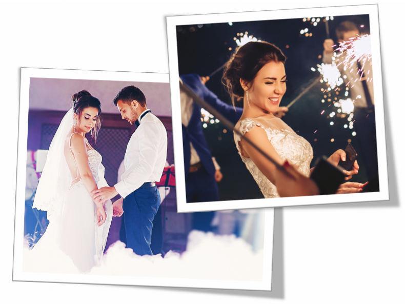 The Perfect Sound & Look packages plus additional touches that take your wedding to the next level, Custom floating Monograms, Cold Spark geysers, Followspot lighting, Dancing on the Clouds, Bubble Clouds for Grand Exits, Co2 Cannons, Confetti cannons, Photo Booths, Green Screen, Children's entertainment and More!